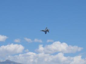 And just like the old hermit dude, we didn't see any aliens either. While making a run through some big ass open valley on the west side of the Death Valley park we ran into this guy. He did some low altitude flybys so we could take some pictures (or so it seemed, maybe he was practicing strafing us). Before I got the camera out he flew by close enough for us to see him waving. Very cool (and loud).