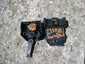 I got the dash apart no problem, and even got the switch taken apart and got all the crud cleaned out of it. It now works perfectly.... although the fan will still only work in full blast mode. I tried bypassing the switch and just jumpering the low speed fan wire to +12, but it still won't run at any speed but full blast. No idea what that's all about, but it looks like I'm only going to get one fan speed unless I want to take it in to a real mechanic. I also found the burnt out bulb that's supposed to light up the HVAC stuff. If I had a replacement I would have swapped it, but I wasn't going to stop mid project just to go get a bulb.