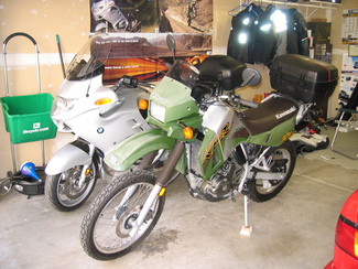 Saturday I went up to SF and bought a KLR. Finally. First started looking in September of 2000, finally got one now. We'll see if it's a good commuter or not. So far, so good. I'll take better pictures at some point. Maybe after it's been painted.