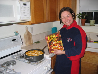 The woman found one of "my" cookbooks (obviously a gift from mom a zillion years ago) and made some sort of beef stew with biscuits on top. White-trash-o-rama for sure, but not too bad. Not as good as the chicken stuff from last week, or the chicken and stuffing but you can't eat chicken all the time.
