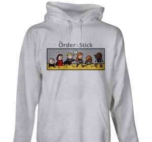 Yea, my very own Order of the Stick sweatshirt. I'm an über-nerd now. Of course, cooking hamburger helper at work on the backpacking stove doesn't help my rep any either (although one of the freaky marketing chicks brought me some organic oreos in payment for sharing my HH).