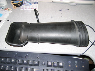 So the other day I made my first Porsche mod. The boxster's airbox has a 'snorkel' in it which serves to make the car quiet, prevent lit cigarettes dropped from the drivers window from getting sucked into the air filter and to allow the use of high pressure car washes. Since I don't intend to take up smoking, and I won't be using any automatic car washes, I felt it was OK to do the 'de-snorkel' mod that so many drivers do. You don't get much of a gain in power (only 2 HP to the wheels per some dyno tests) but you do get an increase in the "authentic Porsche sound". Mostly when you get over 3800 RPM you get a lot more intake noise, and it really does sound cool. I didn't think it was that much louder, but the woman said it was. Hmm. It's a 5 minute job to put it back in if I get tired of it.