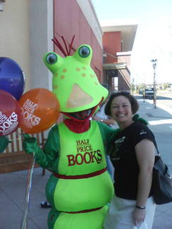 Since I had taken a phone pic of Kristen with the bookworm at the half price books 'grand reopening' sale this AM, she thought she should take a pic of me swapping batteries. I still think she looks goofier.