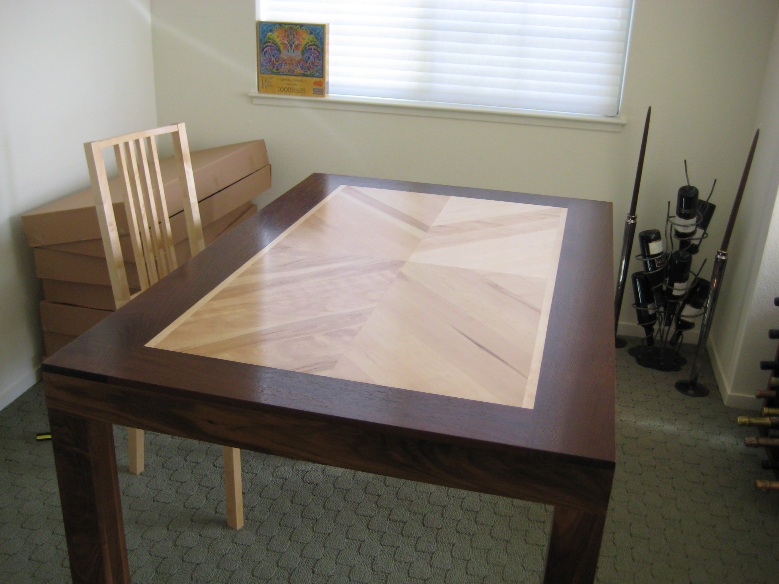 Another busy weekend. Saturday morning we went up and got the table back fro the finisher. The woman is very happy with how it turned out. I must admit it looks better in the room that I thought it would. The Ikea chairs are a 100% match on the wood texture and color, but the white seat cushions have got to go. They're easy to swap out, we just have to pick a fabric we like and get to work.