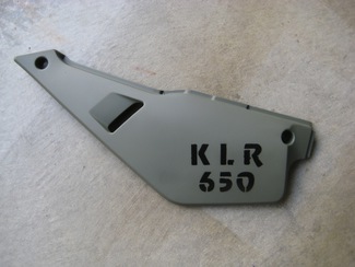 Got all crafty today and got some stencils to re-label the bike. It actually turned out pretty good, the leakage past the stencil was minimal and won't be noticed once there is a coat of road grime on the bike. I really need to get some exhaust paint though and wire brush the rust off the exhaust and get it repainted before it becomes a problem. Unfortunately I can't paint the plastic tank (gas leaches out and will bubble the paint off) so the greens still don't match but it's never been a beauty queen.