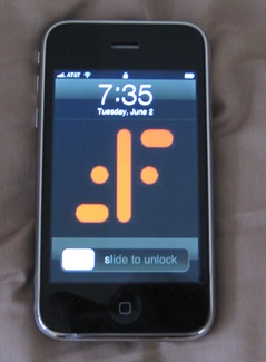 One last pic for the morning, my new iphone wallpaper. All the star fleet and BSG logos had been done to death, so I had to go back in time a little bit further. It's washed out in the photo but in real life it's a bright red on solid black, looks pretty good. So far no one who's seen it has correctly identified it. I'm special, or just geeky, can't tell yet.