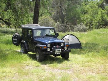 Adventure weekend is over, fun, but I'm glad to be home and resting. Saturday I drove down, got the rifle sighted in (I switched back to the $25 Walmart scope, the Springfield one is just too big for the rifle) with the lead-free ammo and then setup camp. Looked like some sort of Jeep commercial: