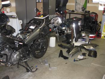 Tank, airbox, about a zillion sensors and vacuum hoses, the nose to get the side panels off, the right side crash bar, etc. There are way too many parts on this bike, the KLR was so much easier to work on. Stupid technology.