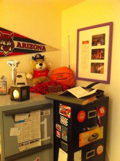 One benefit of getting the connector kit from the ham radio place was that although I'm not using it for the bike, it came in handy making power connectors to mate up with the connectors on the radio Kenny sold me. No splicing! Now I have a radio I can try to hack into echolink so I can get on the weekly net without having to actually be near a radio. It's cheating sorta, but last night at the ham nerd meeting they seemed to think it was cool. I haven't had time (with all the other crap going on) to get a proper antenna so I cheated and got a $25 mag mount dual band. The guys at the hammie hut said I could just stick it on a 18" long piece of scrap metal for it to 'work against' since it wouldn't be stuck to the sheet metal on a car. When I got upstairs I realized that we have a lot of flat metal up there in the form of the filing cabinets so I just stuck it in the middle of all the woman's crap on top of one. I told her she could hang a little UofA flag on it and no one would notice. At some point I'm going to move it into the attic and pull the wire down the closet which is on the other side of the desk the radio is on, or I'll get a real antenna and mount it outside next to the TV dish.