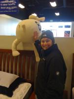 Sunday the woman and I went and bought a bed. She rides with the daughter of the owner of one of the big mattress stores so we used that contact to get a ~58% discount off retail, which puts it just a little cheaper than buying from one of the unknown places on line. Since she knows this is her only chance to buy bed stuff she wisely agreed to get an actual bed frame too (might as well use the discount for as much as possible). Now we'll have a real headboard and everything, just like adults! Delivery is supposed to be next Saturday. We didn't get a mattress associated with the counting sheep I don't think, but the woman wanted to pet one anyway. I think she knows they're not real...