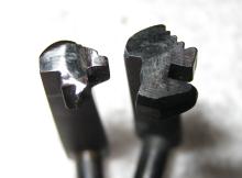 My parts came in from midway and you can see the missing bits on the slide stop when set next to a non-broken one. I polished the end of the new one a bit and it worked fine, but it wasn't as slick as the one the smith made. All those angles/cuts on the broken one actually help it work better, it lets the detent slide easier and lock into place a little easier. I decided to risk it and cut those groves and ramps in the new one myself and it actually worked. Took me a few tries to get it right but going slowly let me make multiple cuts without going too far. I also shortened the cross pin so it's recessed into the frame like the one the smith made. Perfect! It seems to work correctly cycling by hand, but at some point I need to take it to the range and bang it around and make sure. I like doing things myself. The other bonus is that the bluing on the replacement part is more like a parkerized black that matches up with the Kimber perfectly. Now I only have 3 shades of black on the gun instead of 4.