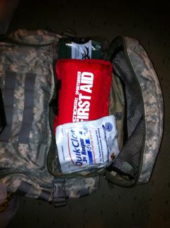 The big backpack makes it way too easy to carry stuff around. In addition to my first aid stuff, my radio (with 2 antennas even), flashlights, basic personal hygiene products, a small spotting scope, etc, I've found that I've even got a spare shirt, socks and underwear stashed in the bag at all times. I still need to get one of those small ponchos in case I have to walk somewhere in the rain.