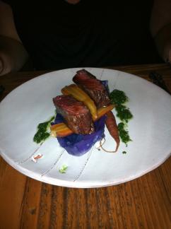 We went to dinner on Wednesday at a place called "Station 1" in Woodside. They're so new they don't have a sign, or a real web site or anything. It's a $50 fixed price menu that was surprisingly good for south bay food. OK, they're not exactly south bay, more like mid-peninsula but whatever, it's not SF. Woodside is very swanky though, and it really is where all the old white people are. Other than the wait staff no one but was was under 65 in there. I didn't take many pictures (should have taken one of the menu had I know then web site would be devoid of such details) but here is a pic of the woman's wygu (sp?) beef.