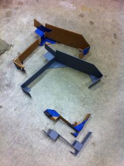 Dad dropped off the metal versions of the cardboard mock-ups I made last week. They look pretty good, hopefully I can drill the holes tonight and see what fine tuning I have to do. I think I'm going to have to cut about 1/2" off the 'tab' that holds the two pieces together but that's OK, that part was designed to be cut to size during the final install. I'm learning to engineer a little wiggle room into my designs.
