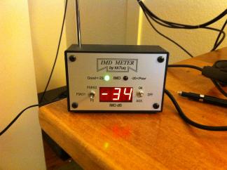 But enough of that, work will always suck. First up, yet another piece of test equipment for the radio. This measures IMD or Inter-Modulation Distortion which is the measurement of the first pair of unwanted sidebands to the desired ones. Right. Larger negative readings are good, and my -34 is pretty good. Guess I can tune my PSK31 setup pretty well considering it was only at -29 when I was tweaking by guesswork without the meter. One less reason for people to ignore me if I'm not all distorted or spewing junk all over the passband.