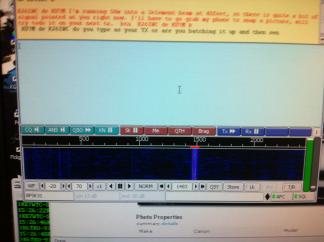 I finally got in contact with Kenny in a most unexpected way. I was playing with the radio and actually made a PSK31 contact. While chatting with the guy some 'jackass' started TXing with a ton of splatter and squashing our signals. He went away and we finished our chat but the guy said that someone should tell the offender what he's doing. I took a picture of the band mess to send to Kenny, and while I was typing the email into the phone I clicked on the signal to see if I could contact the guy and let him know what he was doing. Who's call sign came up..... Kenny's. Doh! I had to chase him around the band a bit to finally get to talk to him but once we got in contact he figured out what was going on. Problem solved and we finally got to 'talk' via the radio.