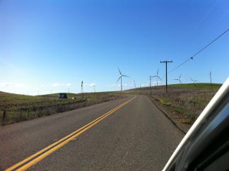 The highlight of the hunting day though was a group hunting the field next to us flushed a bird that flew past 3 hunters, all of them firing at it as it went by and missing completely... only to have the bird fly right into the side of a huge mental barn 500 yards away from them (right next to our field). *WHUMP*, it hit the side at full speed and took itself out. It took their dog 3 minutes to run to the barn to retrieve it. Strangest thing anyone says they've ever seen. No pictures of that, but I did stop to take a picture of the huge windmills that are going up in all the pasture land around the club. They don't look so big in the photo for some reason, but trust me, they're huge.