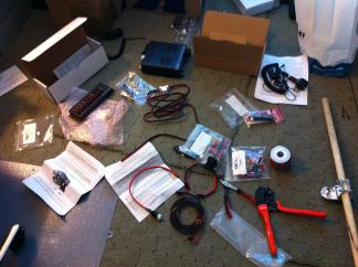 After we lost contact I went back to my power pole wiring project, which looks mostly like a bunch of junk on the floor: