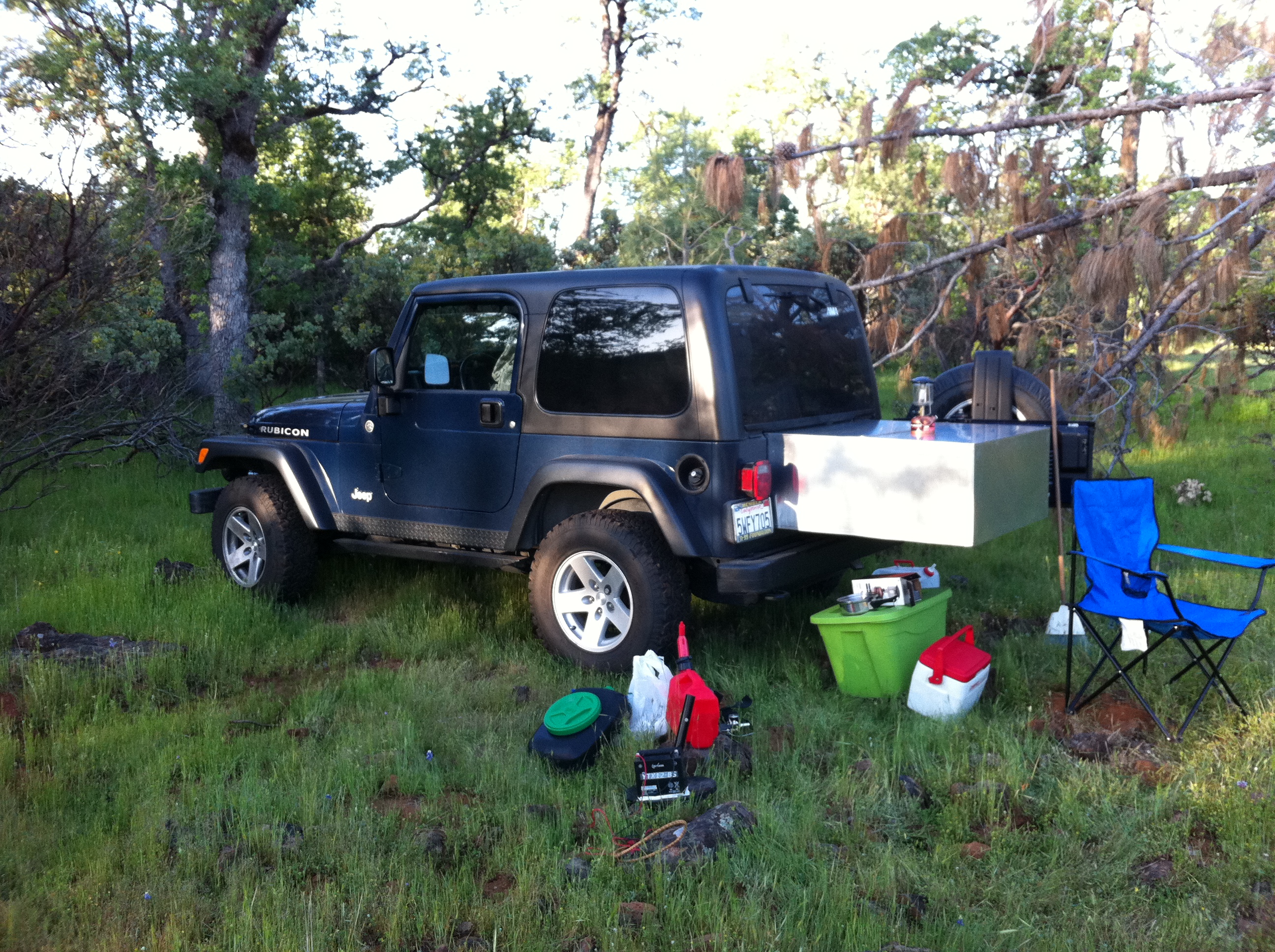 Once darkness started to fall I put away the radio and setup the origami sleeper. Took about 20 seconds to setup and other than needing more padding (the metal floor of the jeep is HARD) the thing worked great. I got some screen material from OSH in case I wanted to screen off the windows but it was cold enough not to need them open. I'm going to pre-cut and put edges (with gaffers tape?) on some screens to I can either velcro or tape them over the windows and the lift hatch opening for the trip this summer. I know at some point I'm going to get hot in that thing and want to open a window without bugs attacking. The only downside is that you have to store all your other gear outside because you're sleeping in the cargo area. If I can find a cargo net I can sling it up in the roll bar which should let me keep some gear in the back while I'm sleeping.