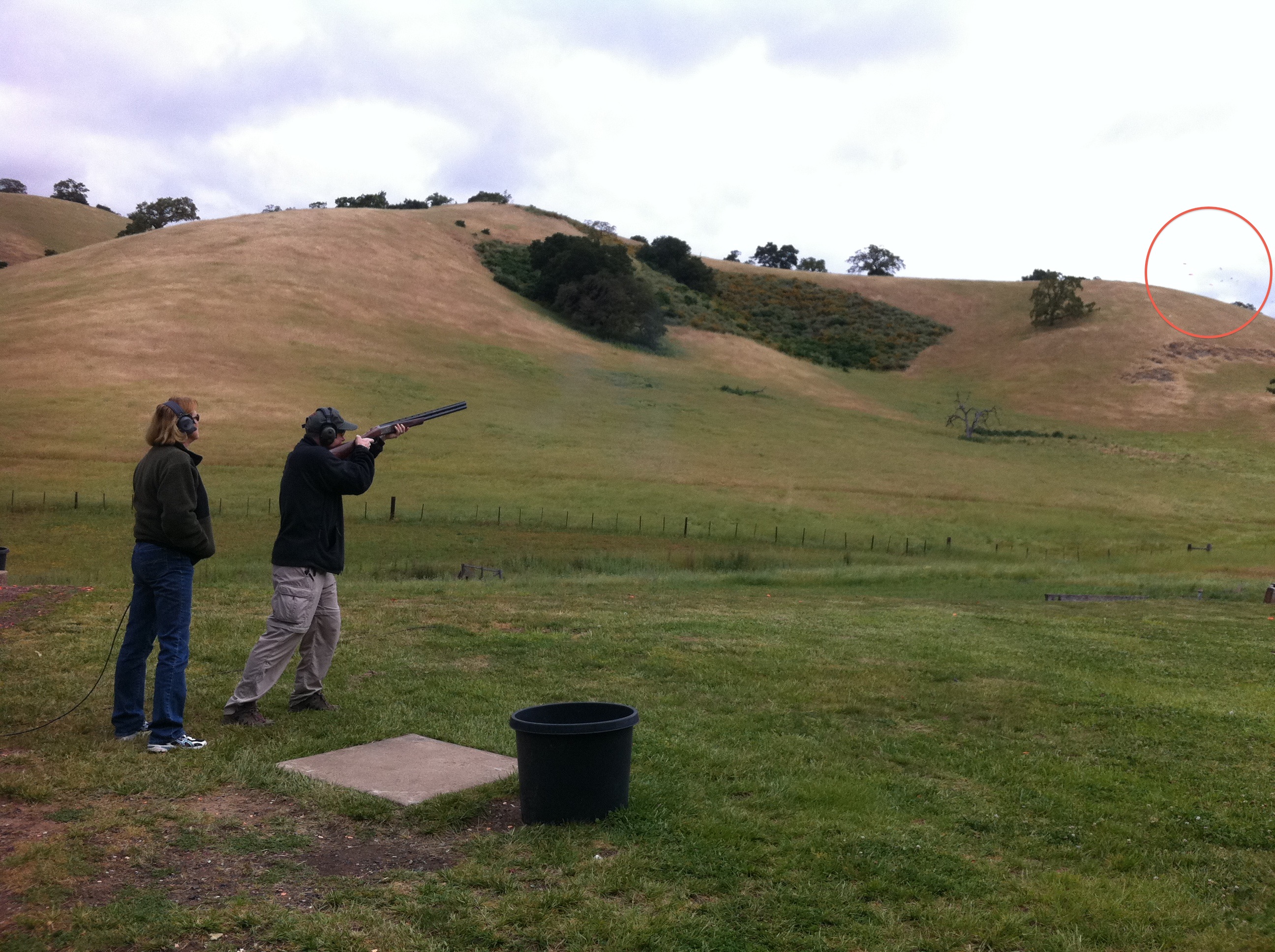 Today the woman went with me to pick up the shotgun and for her to take some pics of my lesson. Most were pretty bad, but she got lucky with this one and actually caught the clay being broken (circled). Not bad for an iPhone.