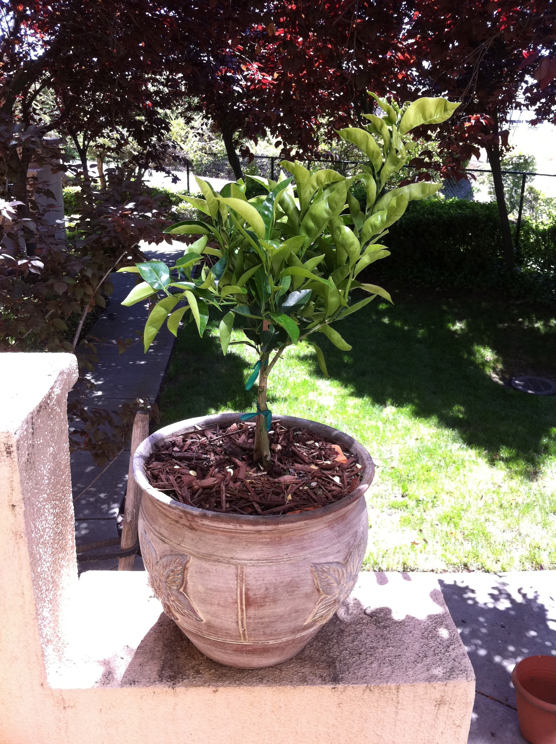 Today the woman and I went to OSH and Lowes to get plants for our annual lame ass box garden. In addition to the usual herbs, tomatoes and peppers (all proven producers even in the boxes) we picked up a dwarf orange tree to go with the dwarf lemon tree she brought with her from Alameda. The lemon tree had 4 lemons on it from last year that we're pretty sure aren't going to ripen more so we'll use them to clean the garbage disposal. The orange tree is now in the pot that held grandma's dead fern plant thing that has been decomposing out there for at least 6 months. I wanted a larger pot but this one was free so we'll use it until the tree gets a little bigger.