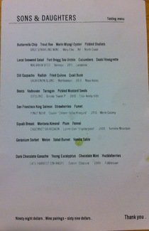 Yesterday we went up to the city to have dinner with Loki and Anna (their wedding is documented in here somewhere). They picked the restaurant and while dinner was interesting, I do not think it was worth the price. We did 1 wine pairing because usually that's enough for two of us but they were pretty cheap with the pours at this place. It was good to catch up, but next time we're picking the restaurant.