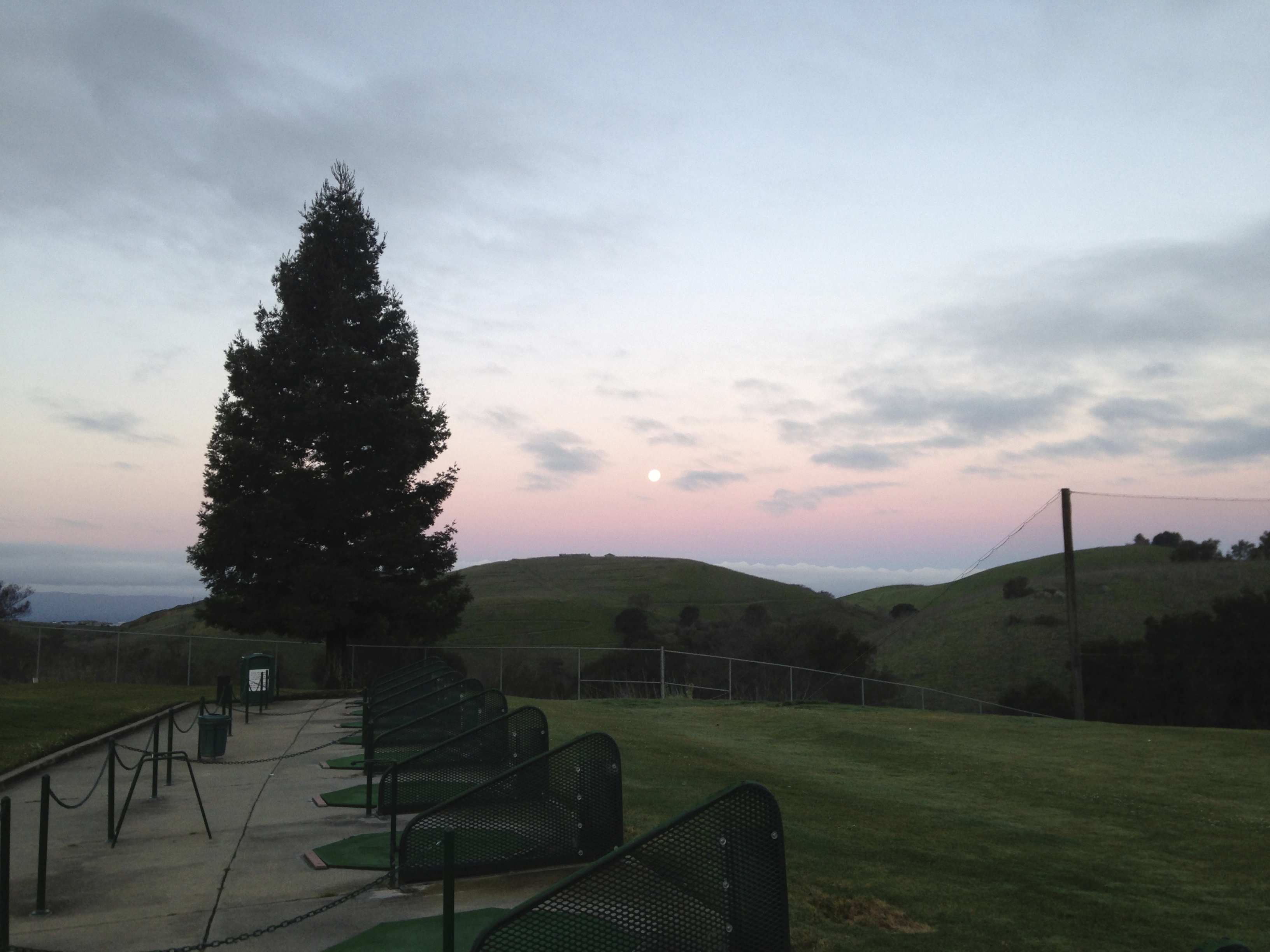 I was hoping the phone would catch this sunrise/moon/cloud image with at least some of the impressiveness of it in real life, but alas my mad photo skillz are weaker than my mad golf skillz.
