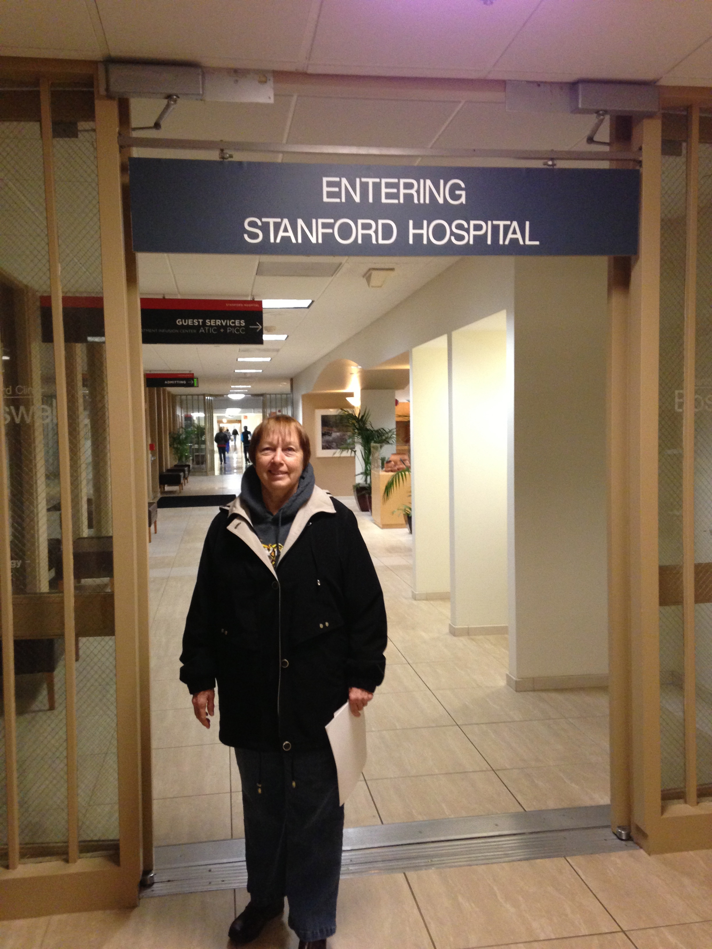 Here is a pic of her entering, hopefully we'll get one of her leaving too. The doctor had some pics of her insides during the surgery showing where they did the graft, where the tumor was, etc. No pictures of the tumor but it was about the size of a nerf football based on the hand waving the doc did. It also had grown some tendrils down toward her spine so they took those out as well. They used 9 units of blood, so basically they swapped out most of it. I said she should be able to drive in the carpool lane alone since she's got parts of other people in here and who knows how many people made up those 9 units of blood. Maybe she can get free bridge toll too.