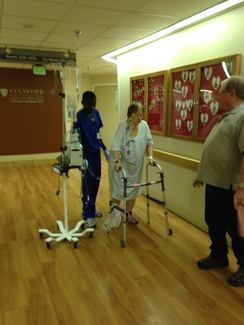 Lot more time in the hospital this weekend. Mom is doing better, but the pain meds still make her loopy and sleepy a lot of the time. You can tell they're reducing it but she's still having trouble sitting up due to the weakness in the stomach muscles they cut/moved. Once she's up she can walk around mostly. She's still not cleared to eat or drink anything, so she's a little unhappy about starving for 7 days now but they want to ensure time for the intestines to heal and her body to get rid of some of the fluids it's retaining. She's so swollen everywhere, but it is getting better. They're hoping by Friday she can go home.... well sorta home. She's going to move to a hotel down the road from the hospital for a few days in case anything happens she's close by rather than actually at home. She can't stay with us as she won't be strong enough to climb all the stairs.