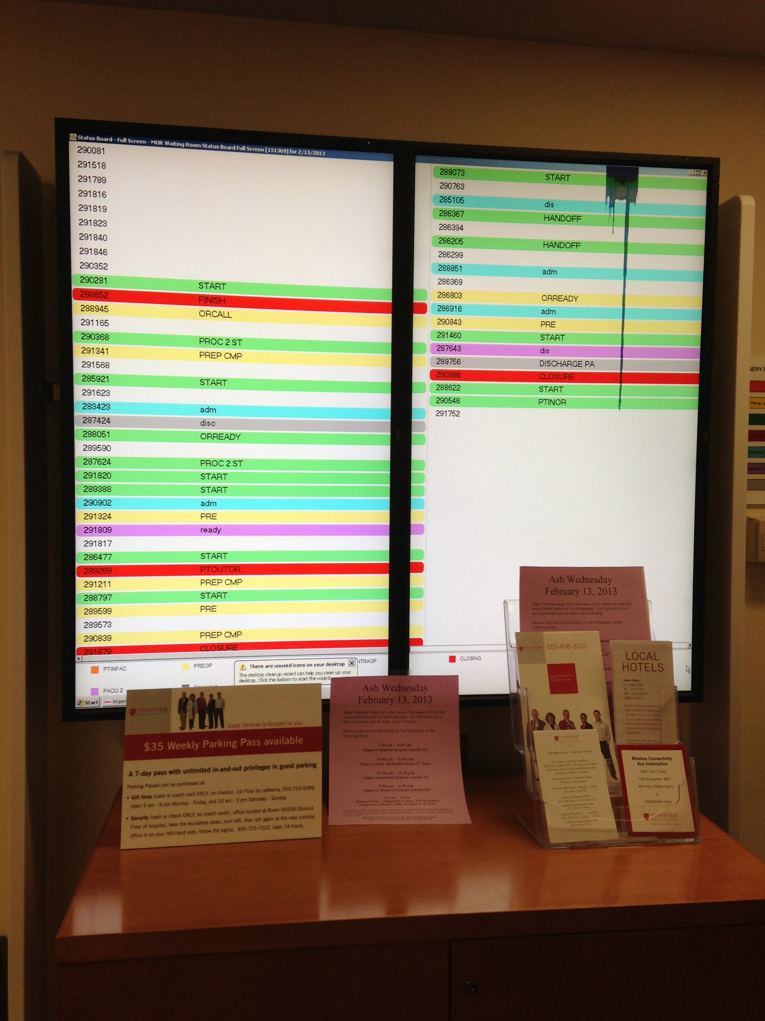 The hospital is pretty high tech, they give you a tracking number so you can watch your patent's progress through the procedure and don't have to ask the nurse all the time. Also, what's up with the screen on the right, and apparently there are unused icons on the screen on the left.