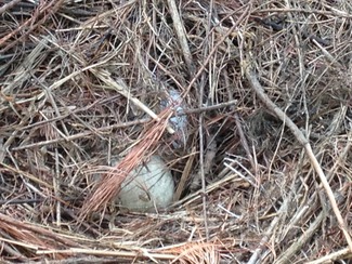 I was in Southport all day (on the coast) at a customer site, the woman was at home at managed to sneak a picture of the goose eggs in the nest the geese built in the burn pile. Ducks and geese? Damn zoo around here is what it is.