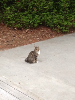 The stray cat keeping watch on the driveway. Not sure what he's (or she's) doing since I already fed it but sometimes it likes to sit there and look around.