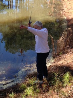 Mom was fishing in the pond again this time from the far side. It's a different from from the other side, and still amazes me how you can see through all the trees now vs. in the summer.