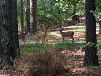 The little buck they've named James was in the yard today, he's got some actual antlers going this year vs. the little stubs he had last year. He was pretty skittish but I managed to get one bad picture of him.
