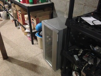 The wine fridge is working hard in the little niche up in the kitchen area so we decided to move it down to the dirt room. I feel better having it out of direct light and it shouldn't have to work so hard down there.