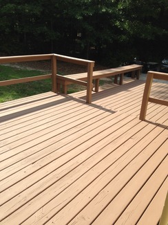 Today the woman spent a bunch of hours painting the deck railings, and after I ran a few tanks of gas through the chainsaw taking care of those trees we downed when dad was here (still hadn't cut them up in all this time) I put a 3rd coat on the flats of the deck. It covered over the rain spots so now it looks good and should be protected. Hopefully it won't rain for the next few days so it can actually dry and harden up like it's supposed to. She has some railings left and some touch-up but otherwise I think that the deck project is officially over.