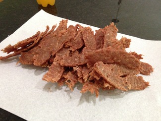 Gator jerky. The meat is really, really dry. When mixing in the spices and cure I put 2-3x the normal amount of water and it was still very dry. Yea, jerky is dry but when you're making up and marinating the meat it's usually tacky wet. This was crumbly wet. Strangest meat I've worked with. Oh, and "tastes like chicken"? I think not. It's a weird combo of shellfish and I don't know what else. Very different. Edible, just weird.