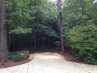 Cleaned away the bushes and the low hanging branches so now we're ready for the carport to go in: