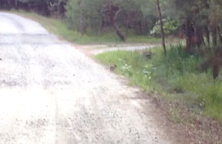 On our walk last night we saw another rabbit on the road. This guy let me get pretty close even after he did the usual rabbit trick of "freezing" until you get really close. That's one of the things you have to do when hunting them without a shotgun or dogs, advance slowly but consistently to get them to hop and hide rather than bolt.
