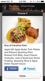 The secret ingredients were apple butter, caviar and champagne, all locally sourced of course. The champagne was kinda a dumb ingredient because they used it in everything but you can't taste it so judging on how well they used it was hard. Does hiding it count?