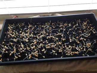 The microgreens we got on the farm tour last weekend sprouted and are starting to grow. This picture is a few days old at this point so we're hoping they'll be ready to harvest in just another week or so. The woman pointed out that we should put some of these seeds in the prepping supplies so if we're stuck eating canned/dried crap for a few weeks we could actually have some fresh sprouts to put on things. She likes some parts of my prepping nonsense.