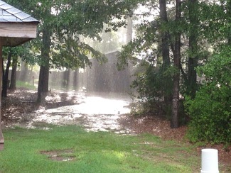 Tuesday afternoon I was at the house and it started raining, a lot. .84" fell in 45 minutes and then it stopped. 8 miles away at Krav class the ground wasn't even wet and they hadn't seen any rain or lightning or anything that we had in the south. At one point it was pouring and sunny at the same time, so the clouds must have been really really localised.
