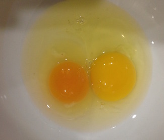 We decided to actually eat the egg, and you can see how dark it is vs. a store bought regular egg as seen on the right. Once I got them scrambled together we couldn't taste a difference, but when we get enough eggs from the chickens I'll want to make pasta and see if we notice a difference beyond the color.