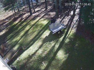 I didn't remember to take a picture of the swing setup, but here is a shot from the security camera of me moving it down toward the pond. Good enough for now.