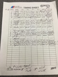 There was a timed autocross portion that my sales rep kept saying he was "looking forward to showing you how a real driver drives" or some crapola. He thinks because he has an M5 (and now a 3-something I sorta saw last time he showed up at a customer site) that he can out drive me because I drive a Prius. Guess I should have told him that I've actually raced before? Meh, why spoil his taunting when after the racing was over it was I who was holding the coveted little foam cone that they wrote "1st" on. Not sure why the notes at the bottom have my time with Raphael written next to it because it's my time as you can see on the sheet.