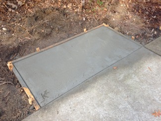 Today I braved the Black Friday crowd and picked up the concrete mix, rebar and a trowel at Home Depot so dad and I could pour the concrete for the trash can parking pad. It was faster than I thought to mix/pour/smooth the slab, and if I did the subsequent steps right by tomorrow we should have a nice little spot to put the trash cans that doesn't look bad. If it does, well, it's a trash can parking pad. How good does it have to look?