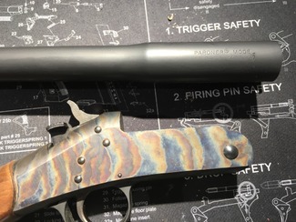 The receiver is case hardened so it's not rusted, but the barrel is as noted before. It's just surface rust, nothing that can't be repaired. The firing mechanism is dirt simple and seems to work, as does the extractor/ejector. Thing throws a metal snap cap out of the chamber with authority, should be no problem with actual fired shells. The wood is in OK shape, I'm thinking some linseed oil is all it needs. I used to have some for the flintlock, can't remember if I had to toss it before the move. I think so, but did I replace it? If not, home depot can help me out there.