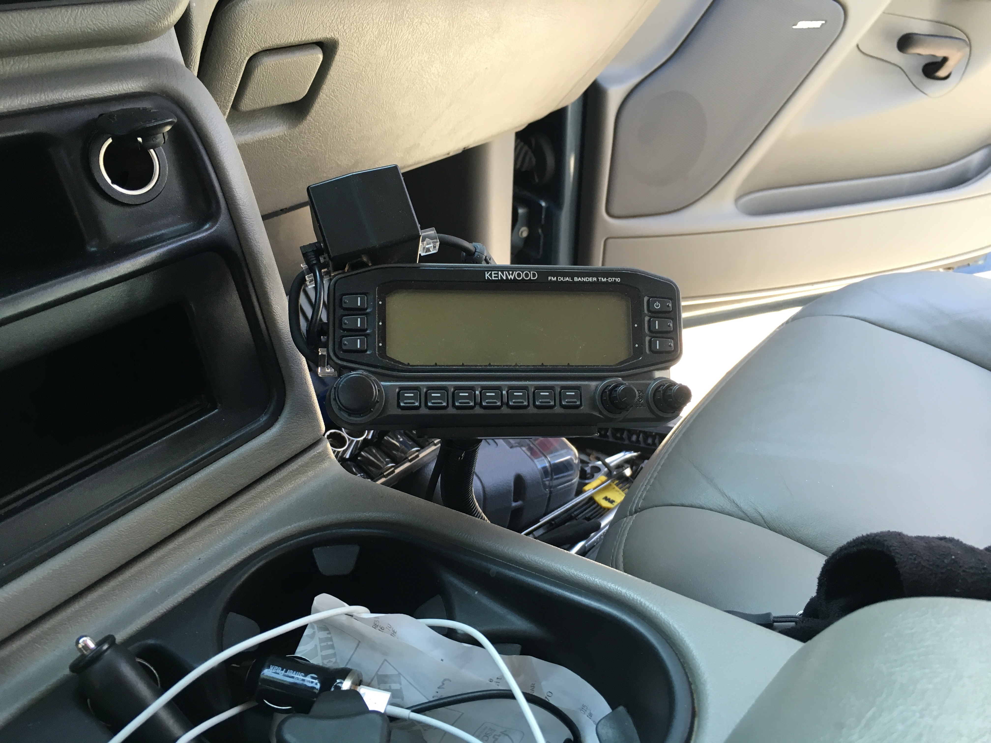 I reused almost everything from the 4runner install including the mounting bracket. It works pretty well and doesn't bounce around too much. Best of all, no cutting anything. With the antenna mounted on the rear door and the radio itself up on the shelf under the rear seat I had enough cable I could remove the extension piece I had made up for the 4runner so there is actually less cable strung around.