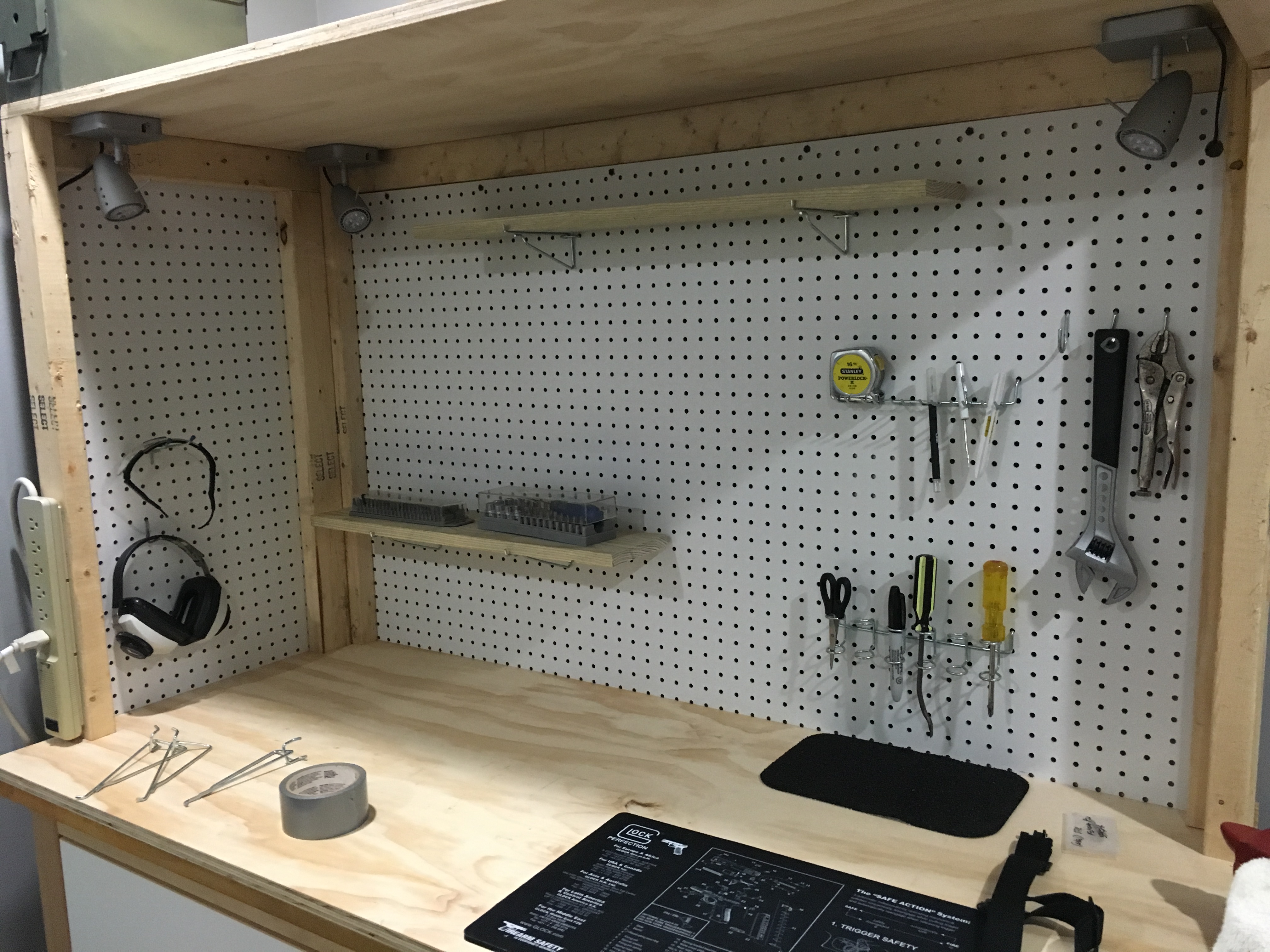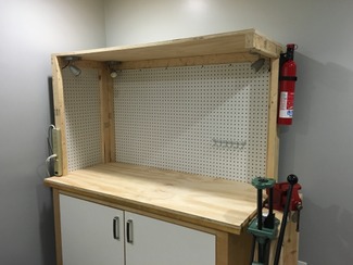 Today's chores included caulking the coop roof, cutting firewood, cleaning out a clogged down spout, replacing the batteries in the weather station central radio (last 2 years apparently), clearing the driveway and finishing up the peg board and lights on my new loading bench "topper".