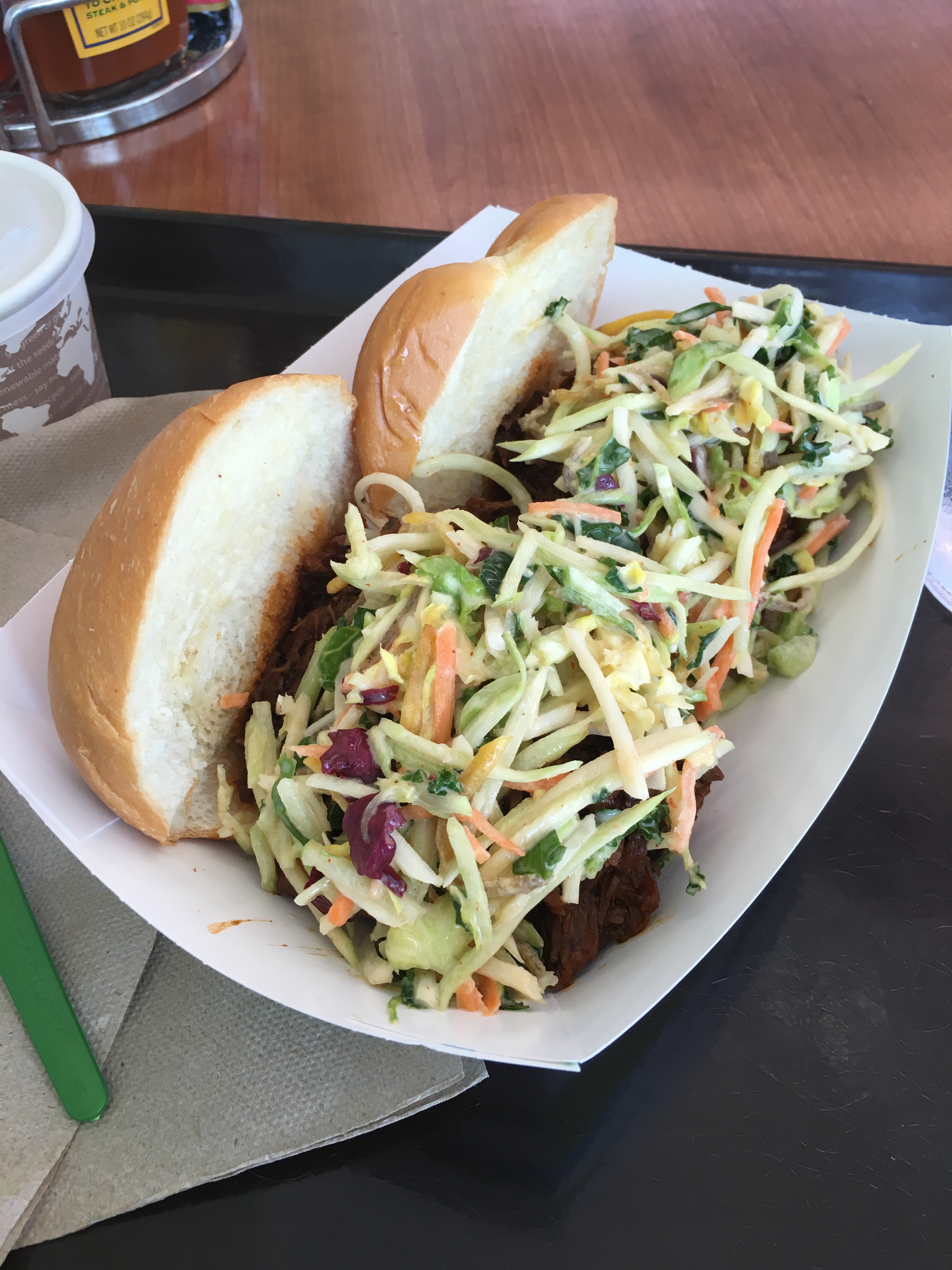 I had lunch over at Biogen today and the have some fancy stuff in their little cafe. Bison sliders were damn good. They had a little bit of heat and the slaw wasn't overly coated in mayo or whatever goop they usually put in slaw.